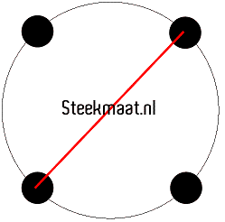 The important measurement is the "pitch circle diameter" (PCD), usually expressed in millimeters, although inches are sometimes used. For a 4- or 6-bolt car, this measurement is merely the distance between the center of two diametrically opposite bolts. In the 4-bolt picture this would be the distance between 2 opposite holes.