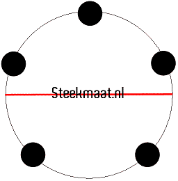 Or just draw an imaginary circle throught the center of all holes, now measure the diameter of this circle.